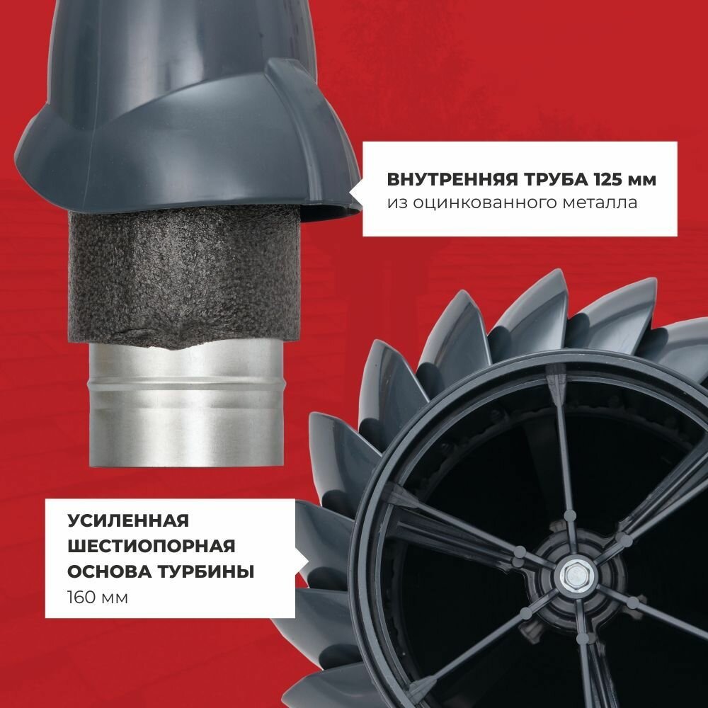 GERVENT Система вытяжной вентиляции ПРОФ 20 + кольцо гидрозатвора, графит