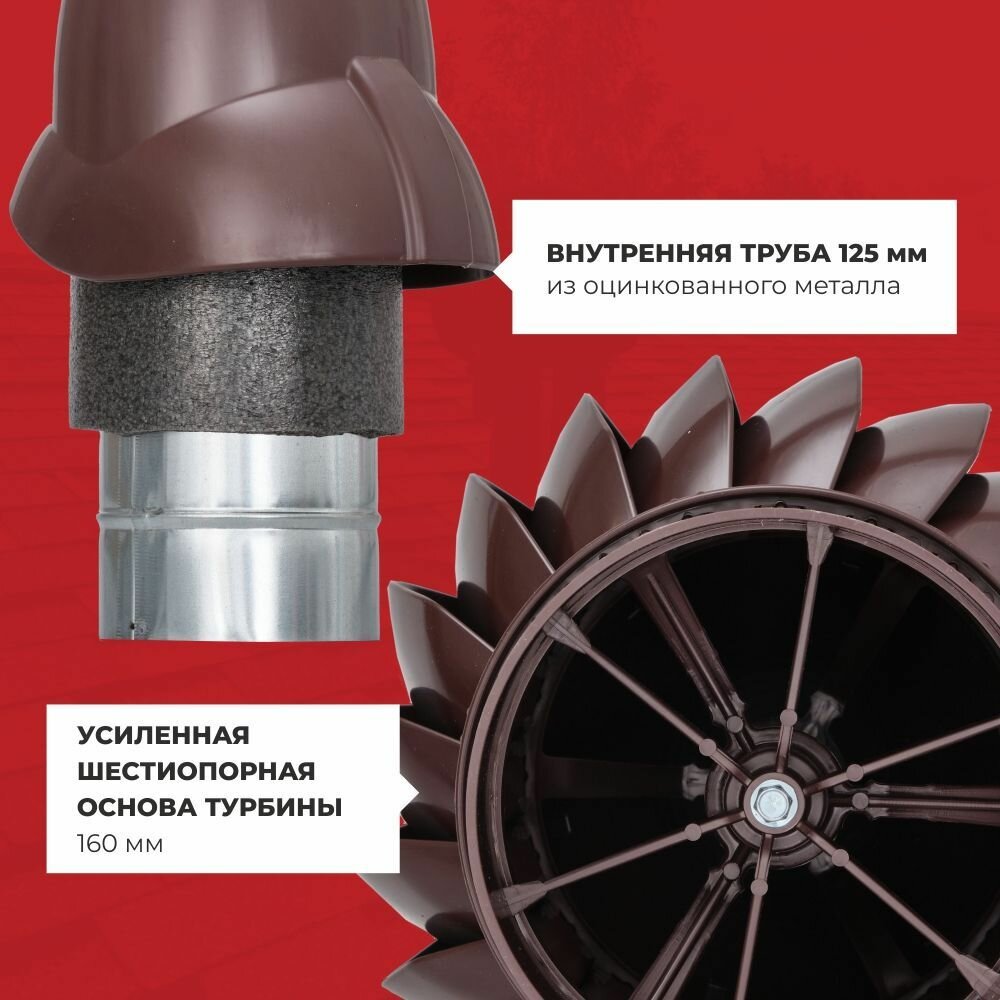 С помощью ветра турбина устройства разряжает воздух в вентиляционной шахте, тем самым увеличивая тягу. Это способствует вытяжке загрязненного воздуха. Причем не только из самого помещения, но также из вентиляционного канала и подкровельного пространства.