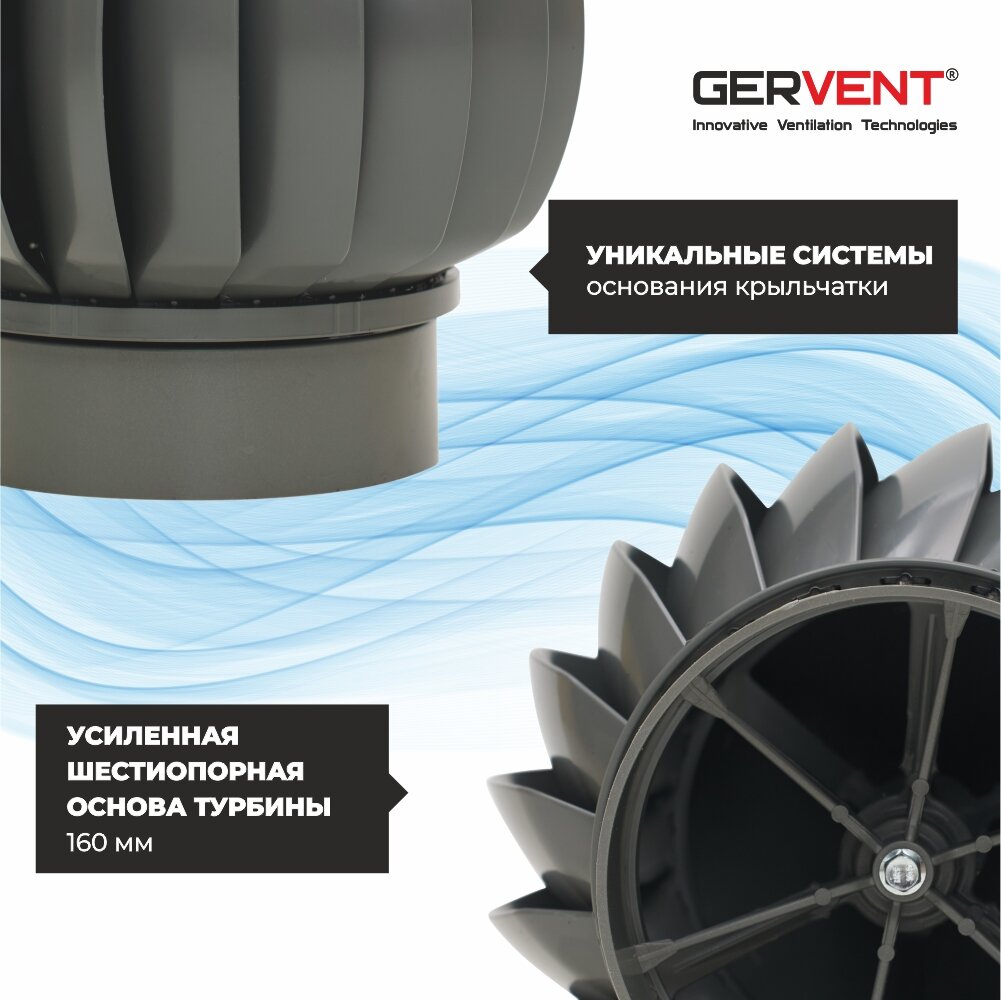Дефлектор GERVENT, РВТ-160, ротационная вентиляция, ABS-пластик, серый, с переходником на трубу: сравнение цен, характеристики, фото, актуальное наличие и цены.