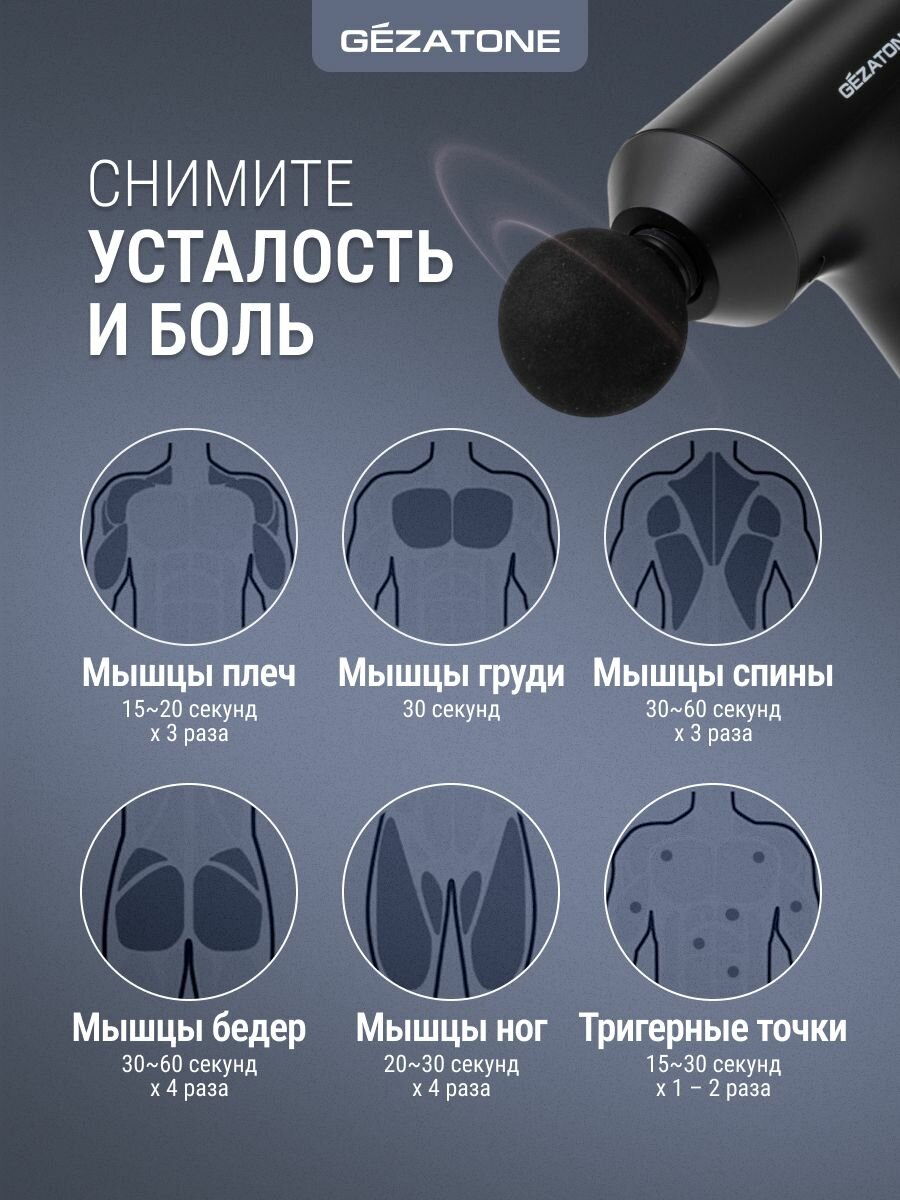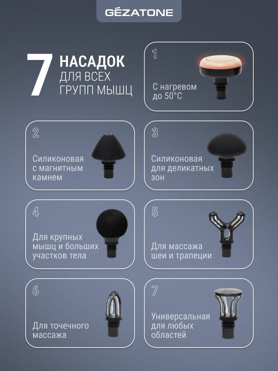 Купить Gezatone, Перкуссионный массажер пистолет для тела, 7 насадок AMG140 с доставкой по всей России. Gezatone, Перкуссионный массажер пистолет для тела, 7 насадок AMG140: сравнение цен, характеристики, фото, актуальное наличие и цены.