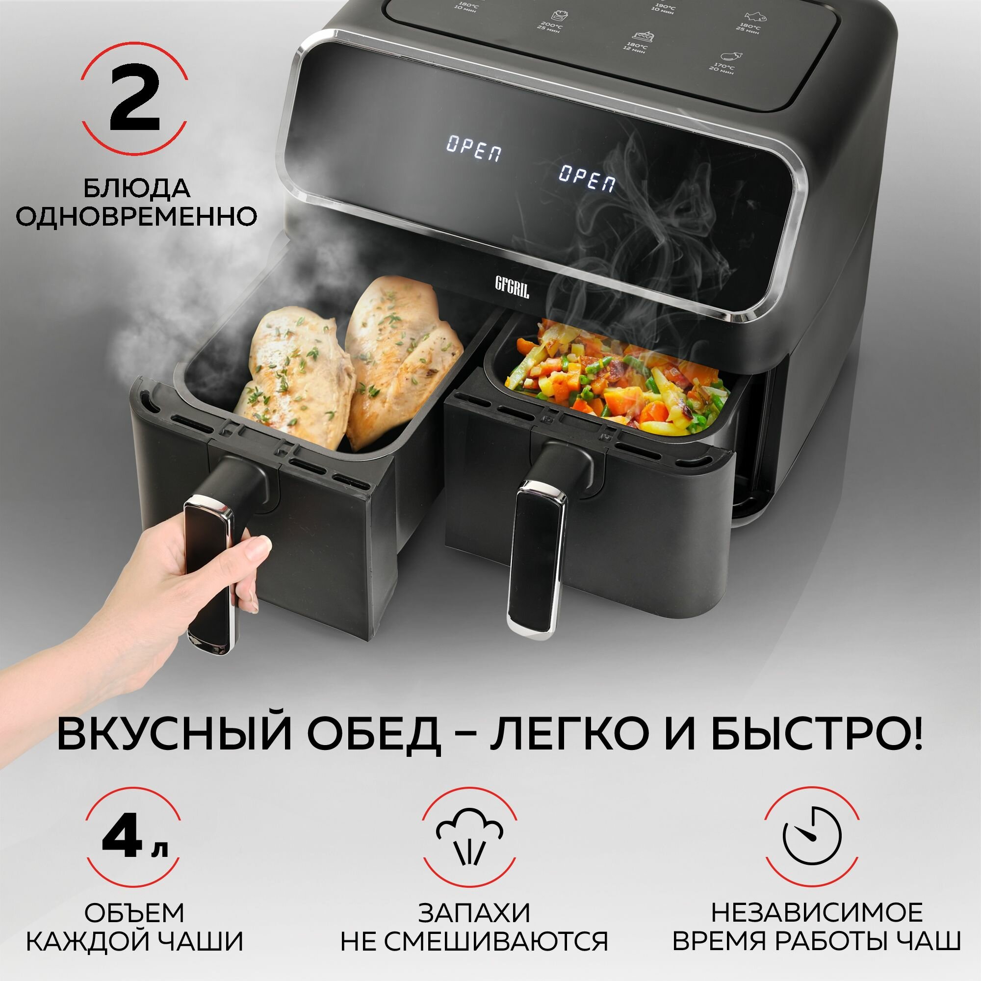 GFGRIL Аэрогриль GFA-8000, 2 чаши, технология Rapid Air, дисплей, 8 программ, 4+4 л: сравнение цен, характеристики, фото, актуальное наличие и цены.