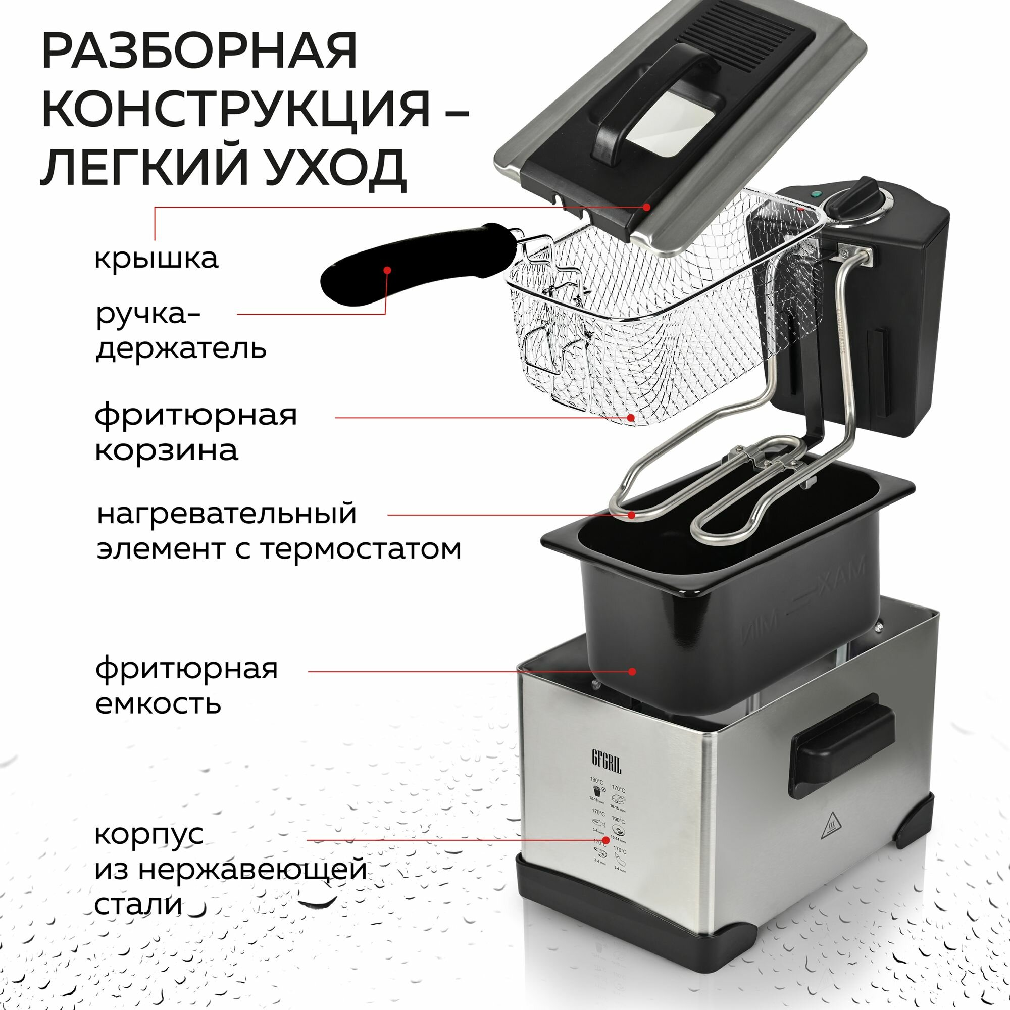 Купить GFGRIL электрическая фритюрница GFF-M2500 Master Cook, быстрый нагрев, объем 2.5 л, съемная корзина и чаша, корпус из нержавеющей стали с доставкой по всей России.