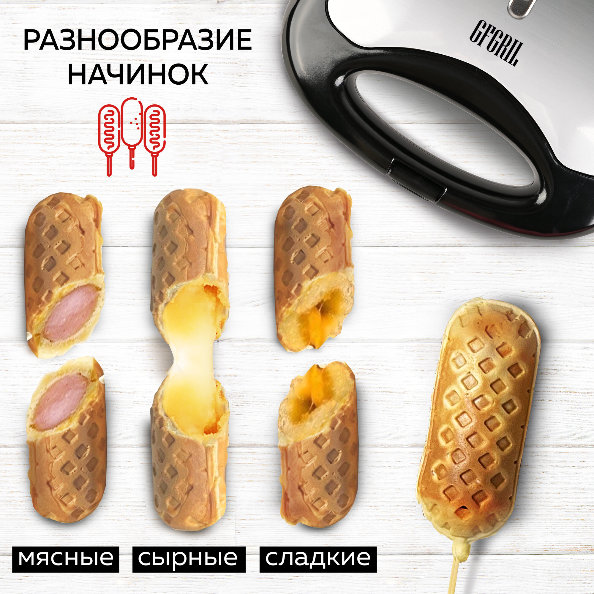 GFGRIL Вафельница для корн-догов GFW-033, сосисочница, приготовление хот-догов: сравнение цен, характеристики, фото, актуальное наличие и цены.
