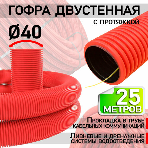 Гибкая гофрированная двустенная труба ПНД Промрукав, с зондом красная PR15.0252, D40, 25 метров: сравнение цен, характеристики, фото, актуальное наличие и цены.