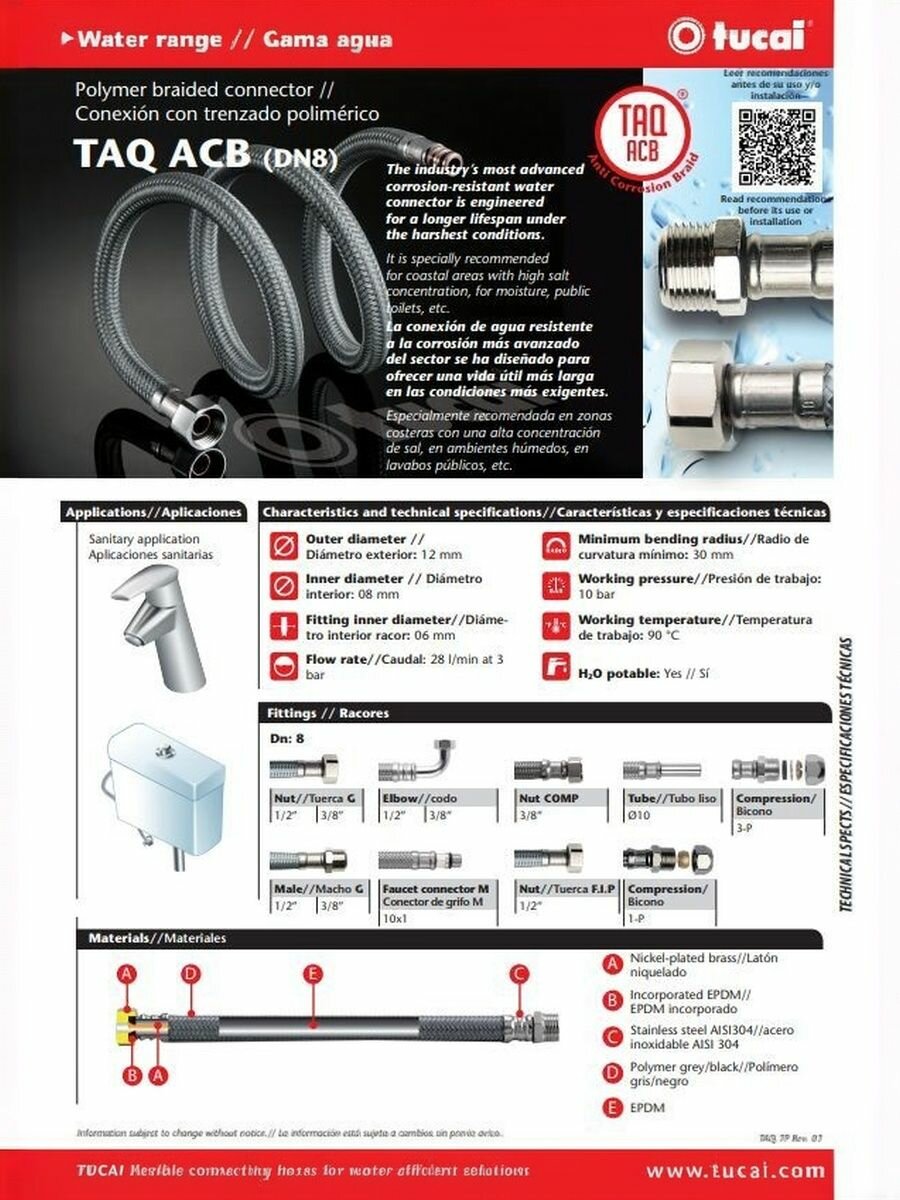 Самое современное в отрасли коррозионностойкое водяное соединение было разработано для обеспечения более длительного срока службы в самых сложных условиях. Особенно рекомендуется в прибрежных районах с высокой концентрацией соли, во влажной среде, в общественных туалетах и т. д. Подходит для подключения смывных бочков, унитазов, и другого сантиарно-технического оборудования, любых производителей.