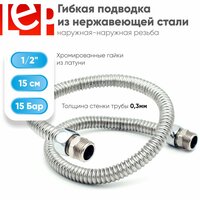 Гибкая подводка для воды LEP 1/2″ 15см из нержавеющей стали (штуцер-штуцер): сравнение цен, характеристики, фото, актуальное наличие и цены.