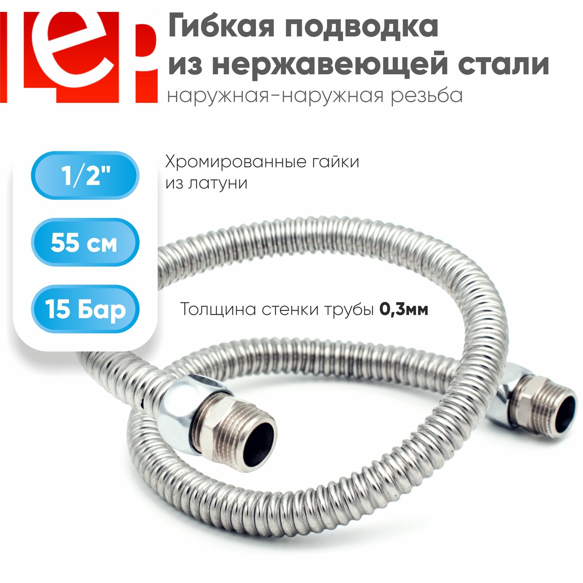 Гибкая подводка для воды LEP 1/2″ 55см из нержавеющей стали (штуцер-штуцер): сравнение цен, характеристики, фото, актуальное наличие и цены.
