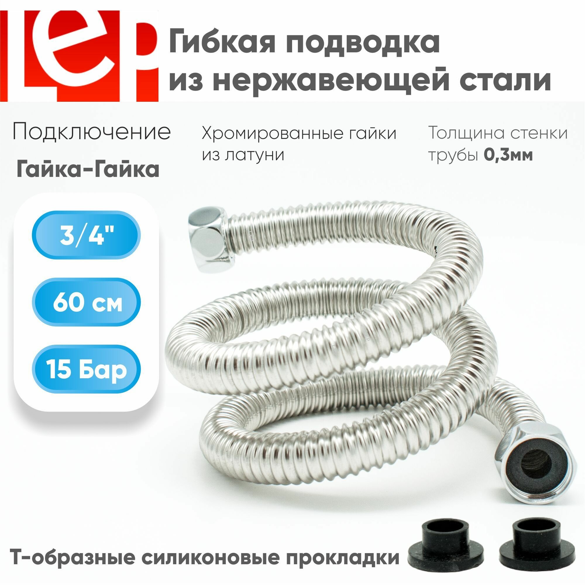 Купить Гибкая подводка для воды LEP 3/4″ 60см из нержавеющей стали. с доставкой по всей России. Гибкая подводка для воды LEP 3/4″ 60см из нержавеющей стали.: сравнение цен, характеристики, фото, актуальное наличие и цены.