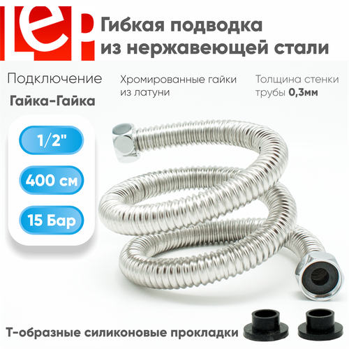 Гибкая подводка для воды LEP 1/2″ 400см из нержавеющей стали: сравнение цен, характеристики, фото, актуальное наличие и цены.