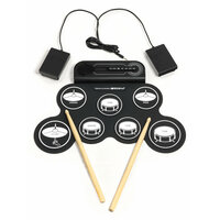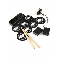 Портативная гибкая барабанная установка с автономной работой до 6 часов. Подарите себе или ребенку возможность играть на барабанах где угодно! Эта установка сочетает реалистичное звучание и полную функциональность профессионального инструмента с невероятной портативностью. Идеально для домашних занятий, репетиций, путешествий и записи музыки. Всё необходимое уже в коробке! Вы можете начать играть сразу после распаковки. · Электронный барабан (7 панелей) · Барабанные палочки – 2 шт. · Педали – 2 шт. · Кабель для подключения к сети · Руководство пользователя · 3 способа игры: · Тренируйтесь в тишине: Подключите наушники, чтобы никому не мешать. · Репетируйте с комфортом: Используйте встроенный динамик для самостоятельных занятий. · Устройте выступление: Подключитесь к мощной колонке и удивите всех насыщенным звуком! · Ритм в дороге: Компактный размер (43х30 см) и встроенный аккумулятор на 6 часов работы. Ваша студия всегда с вами. · Не боится пролитого кофе: Влагозащищенная поверхность из прочного силикона устойчива к случайным брызгам и износу. · Ваша домашняя студия: Подключайтесь как MIDI-контроллер к компьютеру для записи своих треков. · Полноценная установка: 7 панелей (1 SNARE, 3 TOMS, 1 CRASH, 1 RIDE, 1 HI-HAT) и 2 педали (BASS DRUM, CLOSED HI-HAT) — всё для слаженных ритмов. · 5 стилей звучания: Освойте разные жанры — POP, ROCK, LATIN, ELECTRO/EDM, PERCUSSION. · Питание: Литий-ионный аккумулятор (650 mAh) до 6 часов / работа от сети. · Конструкция: Прочный, влагозащищенный силикон, толщина всего 4 мм. Кому подойдет этот инструмент: · Начинающим музыкантам и детям для комфортного и безопасного обучения. · Опытным барабанщикам для репетиций в любом месте и записи демо. · Путешественникам и всем, кто ценит мобильность и пространство.