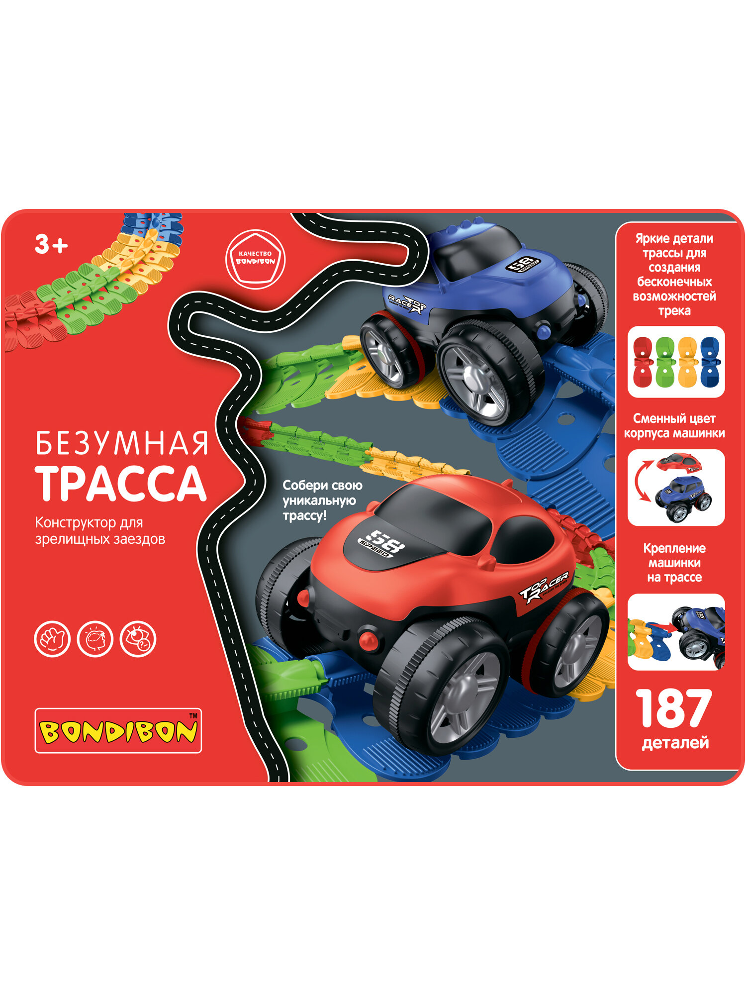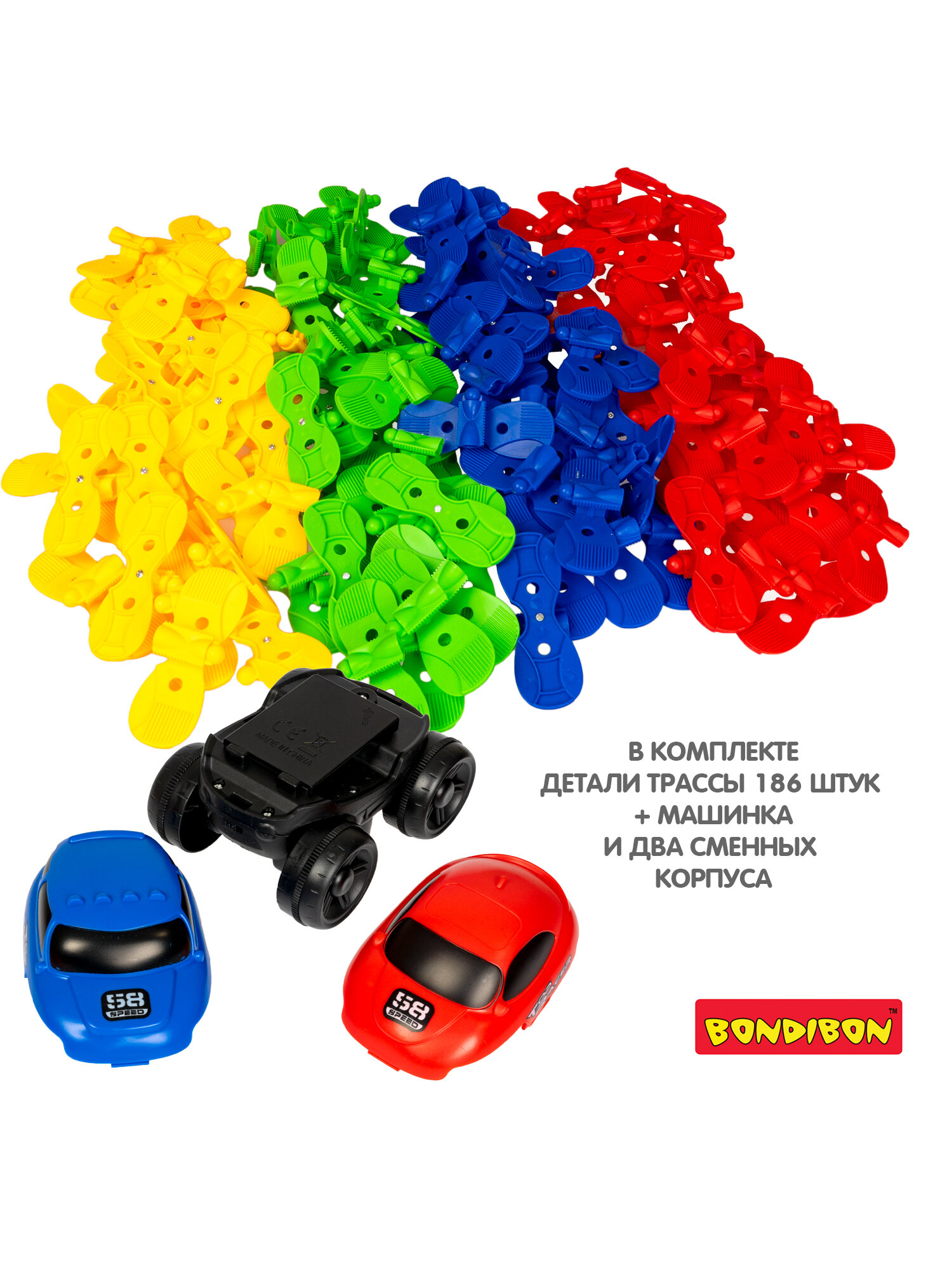 Купить Гибкий автотрек / безумная трасса / с машинкой, двумя сменными корпусами / 187 деталей / Bondibon с доставкой по всей России.