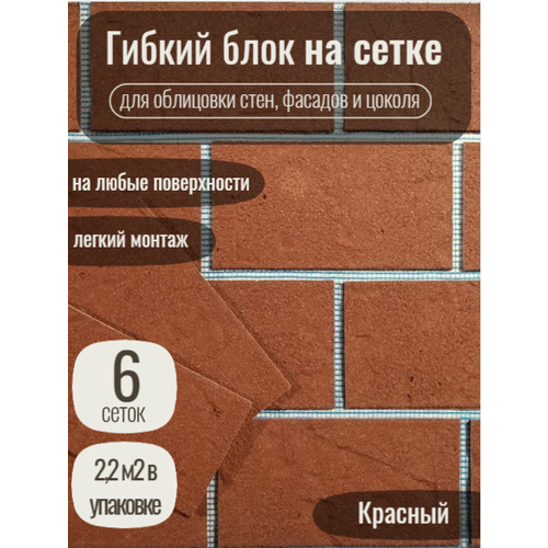 Гибкий блок на сетке с защитной пленкой "Красный" - это высококачественный материал для фасадов и интерьеров, который сочетает в себе преимущества кирпича и гибкость. Изготовленный из мраморной крошки, акриловых связующих и пигмента, он обеспечивает прочность, долговечность и экологичность.