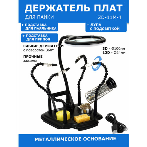 Купить Гибкий держатель для пайки плат третья рука (4 зажима) с лупой и светодиодной подсветкой, с подставкой для паяльника Zhongdi ZD-11M-4 с доставкой по всей России. Гибкий держатель для пайки плат третья рука (4 зажима) с лупой и светодиодной подсветкой, с подставкой для паяльника Zhongdi ZD-11M-4: сравнение цен, характеристики, фото, актуальное наличие и цены.