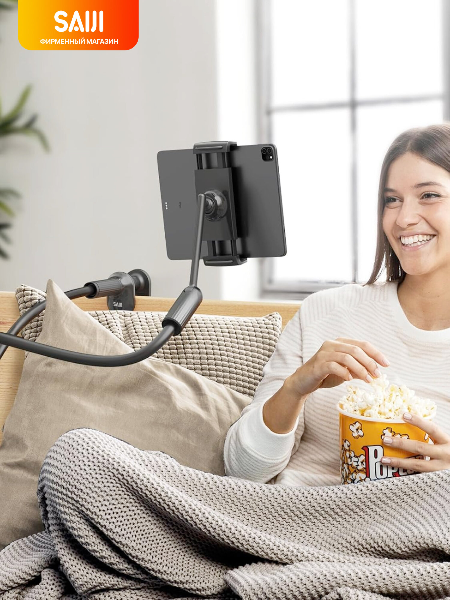 Гибкий держатель SAIJI рассчитан на многократное использование. Разработан, чтобы освободить ваши руки и предоставить вам максимальный комфорт для видеозвонков, чтения, записи видео, просмотра фильмов и съемки селфи.