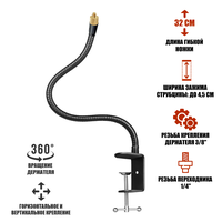 -Гибкий держатель GDS-38 со струбциной, резьба 3/8 - 1 шт.