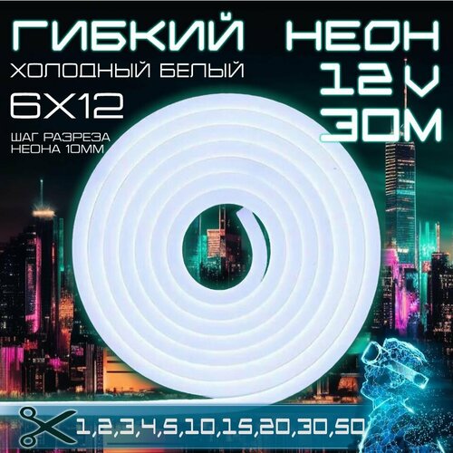 Гибкий неон 12V холодный белый 30 метров - это высококачественная светодиодная лента, которая обеспечивает яркое и равномерное свечение.