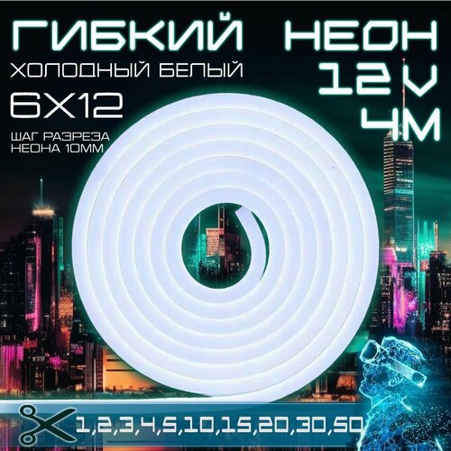 Гибкий неон 12V холодный белый 4 метра - это высококачественная светодиодная лента, которая обеспечивает яркое и равномерное свечение.