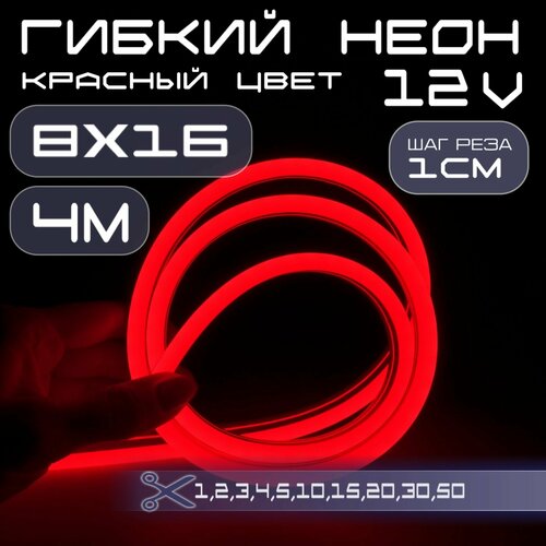 Представляем вам Гибкий неон мощностью 10W и напряжением 12V красного цвета , размером сечения 8х16, количество светодиодов 110 LED/M, шаг реза 10мм.
