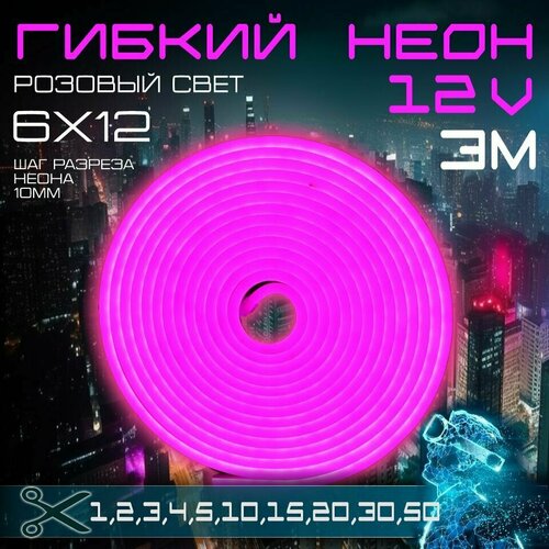 Гибкий неон 12V розовый 3 метра - это высококачественная светодиодная лента, которая предназначена для архитектурной, ландшафтной и интерьерной подсветки.