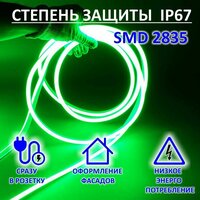 Неоновая лента 220 Вольт Люкс класса Гибкий неон. Количество светодиодов 144led/m, что дает интенсивное увеличение свечения , при незначительной мощности. Насыщенный яркий цвет, как у неона 12 вольт. Размер светодиодов SMD2835, мощность 11Вт/м, напряжение 220В. Размер сечение 8*16 мм , герметичность IP67. Цвет свечения зеленый. Световой поток 24-26Lm/Led. Разрезать светодиодную ленту можно только в специально промаркированных местах (маркировка ножницы). Кратность резки 1м. Питание через выпрямитель AC 220. К Применяют неон на 220 вольт для декорирования архитектурных зданий, высоток, торговых центров, автозаправок. Так же гибким неоном украшают парковые зоны, производят подсветку мостов. Легкий монтаж, беспрерывное подключение в одну длину до 50 м.