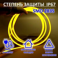 Неоновая лента 220 Вольт Люкс класса Гибкий неон. Количество светодиодов 144led/m, что дает интенсивное увеличение свечения , при незначительной мощности. Насыщенный яркий цвет, как у неона 12 вольт. Размер светодиодов SMD2835, мощность 11Вт/м, напряжение 220В. Размер сечение 8*16 мм , герметичность IP67. Цвет свечения желтый . Световой поток 24-26Lm/Led. Разрезать светодиодную ленту можно только в специально промаркированных местах (маркировка ножницы). Кратность резки 1м. Питание через выпрямитель AC 220. К Применяют неон на 220 вольт для декорирования архитектурных зданий, высоток, торговых центров, автозаправок. Так же гибким неоном украшают парковые зоны, производят подсветку мостов. Легкий монтаж, беспрерывное подключение в одну длину до 50 м.