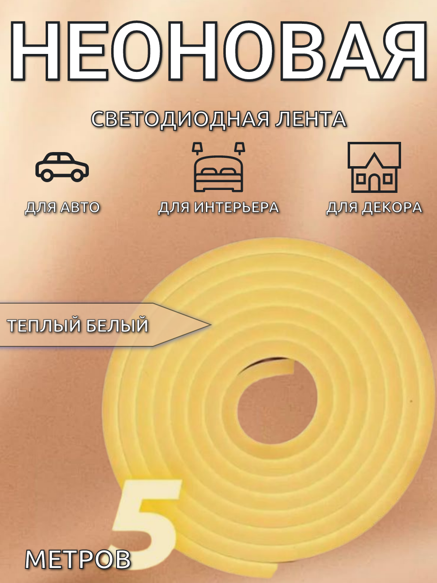 Гибкий неон 5 м светодиодная лента с креплениями, неоновая лента, подсветка для комнаты , теплый белый цвет: сравнение цен, характеристики, фото, актуальное наличие и цены.