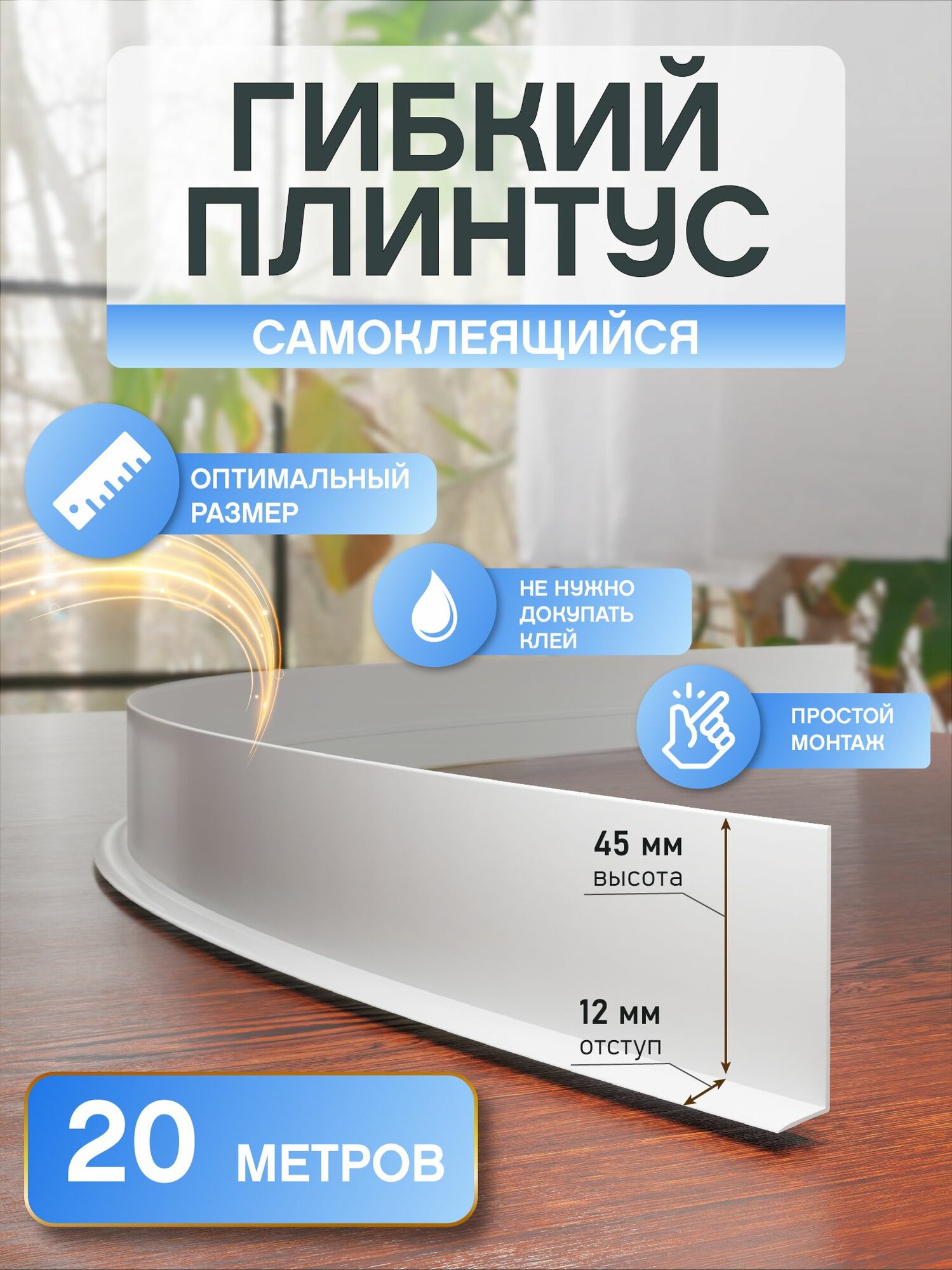 Гибкий плинтус самоклеящийся 20 метров: сравнение цен, характеристики, фото, актуальное наличие и цены.