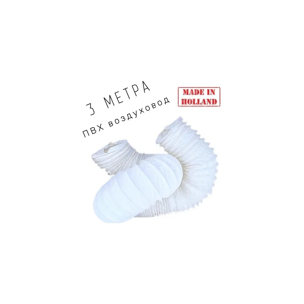 Гибкий полимерный ПВХ воздуховод PVC White -152 мм x 3 м DEC P152/3PBD/VF плотный и эластичный, способен поглощать длительную вибрацию и устойчив к влаге. Монтируется на круглые и овальные соединительные элементы. Основная область применения – системы бытовой и промышленной вентиляции. Пригоден для мобильных кондиционеров, кухонных вытяжек. Воздуховод упакован в нейлоновую сеточку. PVC White состоит из одного слоя прочного поливинилхлорида. Стальной пружинный каркас впаян в структуру оболочки воздуховода. Безопасность и прочность воздуховода была проверена в соответствии с действующими международными стандартами: стандарт NEN 13180 – определяет требования и методы испытаний технических характеристик гибких воздуховодов, используемых в установках вентиляции и кондиционирования воздуха в зданиях, предназначенных для людей. Описание: Диапазон температур: -30 °С до 70 °С Максимальное рабочее давление: макс. +3000 Па Максимальная скорость воздуха: макс. 30 м/с Минимальный радиус изгиба: мин. 0.56xD Стандартная длина: 3 метра Конструкция: Количество слоев: 1 Слой поливинилхлорида (ПВХ): 1 Толщина стенки: 0.36 мм Стандартный цвет: белый