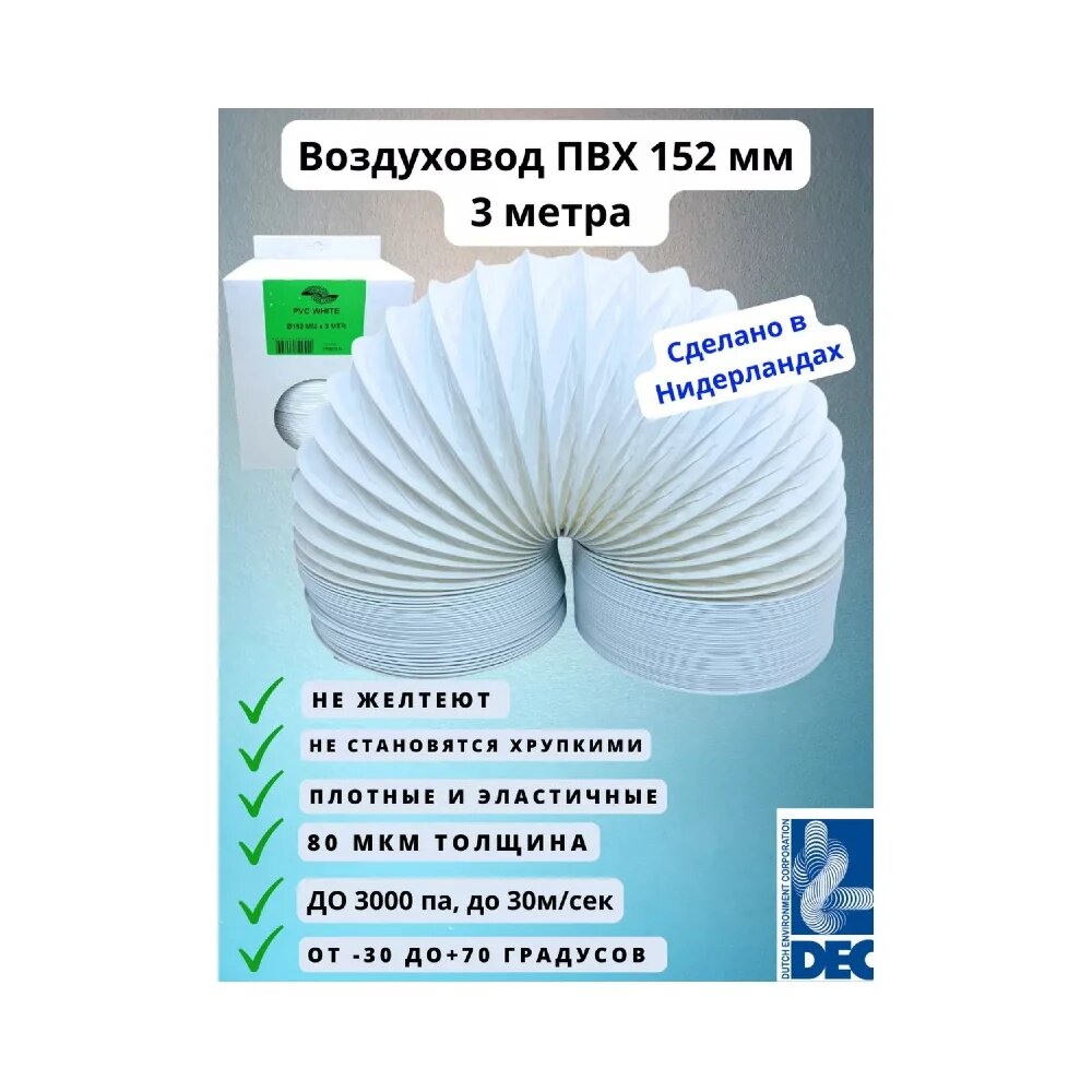 Купить Гибкий полимерный ПВХ воздуховод PVC White -152 мм x 3 м DEC P152/3PBD/VF из качественной стали с доставкой по всей России. Гибкий полимерный ПВХ воздуховод PVC White -152 мм x 3 м DEC P152/3PBD/VF из качественной стали: сравнение цен, характеристики, фото, актуальное наличие и цены.