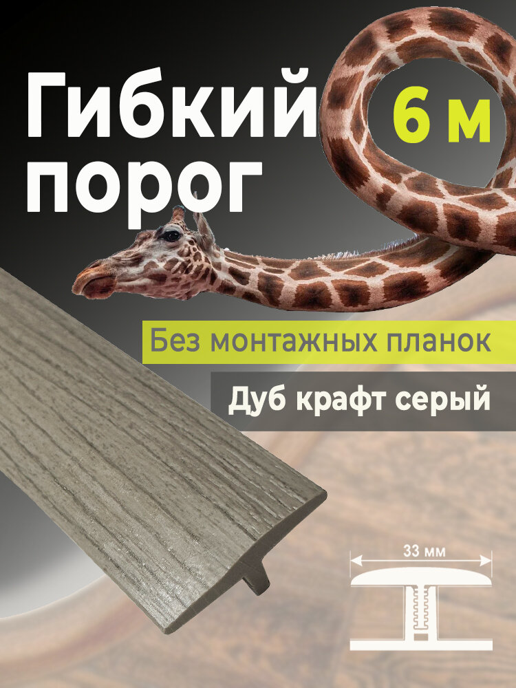 Гибкий порог SmartProfile BR 224 "Дуб крафт серый" 6 м - без монтажных планок.