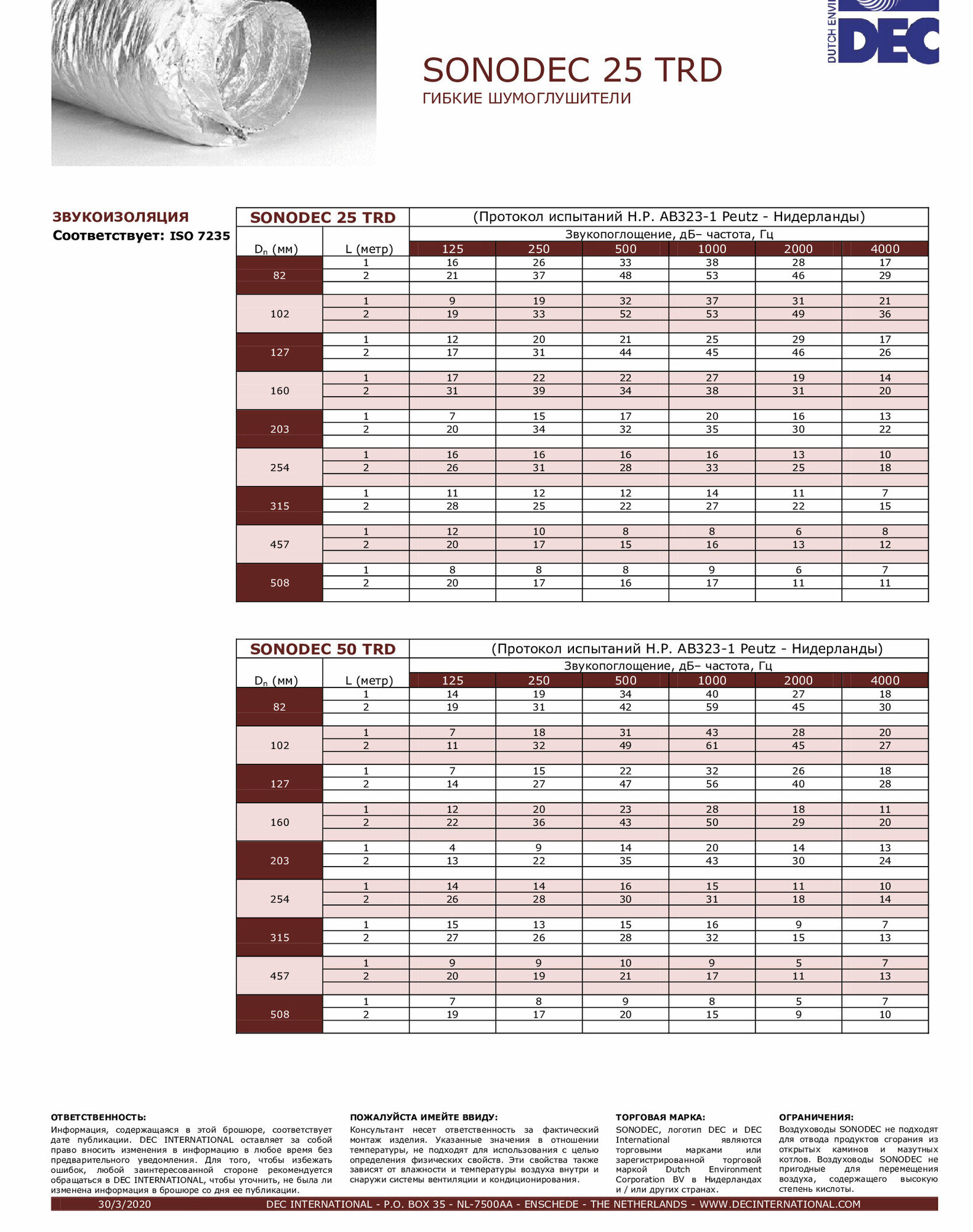 Гибкий шумоглушитель DEC Sonodec TRD 254 мм Х 0,5м голландской компании Dec International: сравнение цен, характеристики, фото, актуальное наличие и цены.
