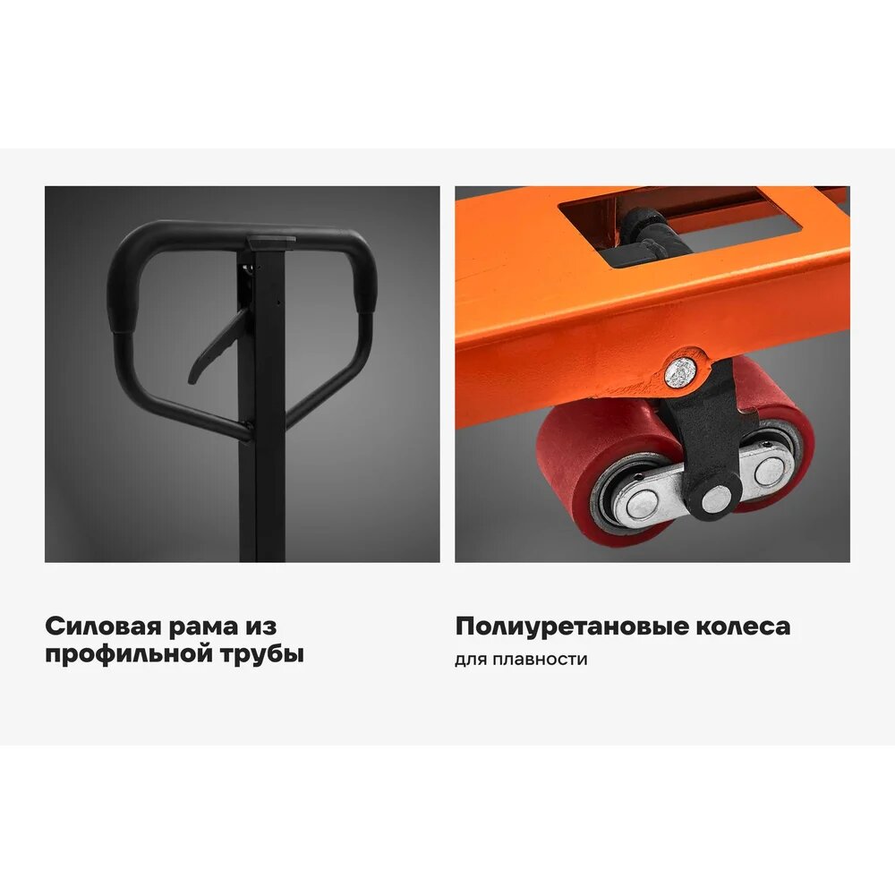 Гидравлическая тележка Gigant JHPT2500-1800-PO подойдет для работы на складах со средней пропускной способностью. Наличие гидравлического узла позволяет перевозить палетированные грузы массой до 2,5 тонн. Минимальная высота подъема составляет 85 мм, максимальная - 195 мм. Длина вил - 180 см. Удлиненные вилы прекрасно подойдут для работы с нестандартными паллетами либо длинномерными грузами. Благодаря оптимальной длине сохранена маневренность, необходимая для узких помещений. Полиуретановые колеса - для плавности. Gigant – собственная торговая марка компании ВсеИнструменты. ру, разработанная специально для требовательных мастеров. Продукция представлена профессиональными и бытовыми инструментами, имеет доступную цену и высокое качество. При изготовлении товаров Gigant используется современное оборудование и прочные материалы. Производство осуществляется на современных предприятиях России и Азии. Тестирование товаров осуществляется в два этапа, каждая партия инструментов проходит проверку на соответствие стандартам и заявленным техническим характеристикам. Это является залогом качества и надежности готового продукта. Продукция представлена широкой линейкой инструментов. У нас можно приобрести ручной инструмент, строительный, садовый, сантехнический, климатический, крепежный, автогаражный, а также станки, расходные материалы и многое другое.
