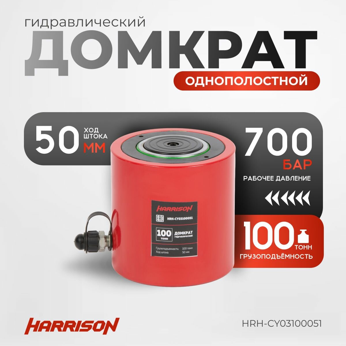 Купить Гидравлический домкрат, однополостной 100 тонн HARRISON HRH-CY03100051 с доставкой по всей России. Гидравлический домкрат, однополостной 100 тонн HARRISON HRH-CY03100051: сравнение цен, характеристики, фото, актуальное наличие и цены.