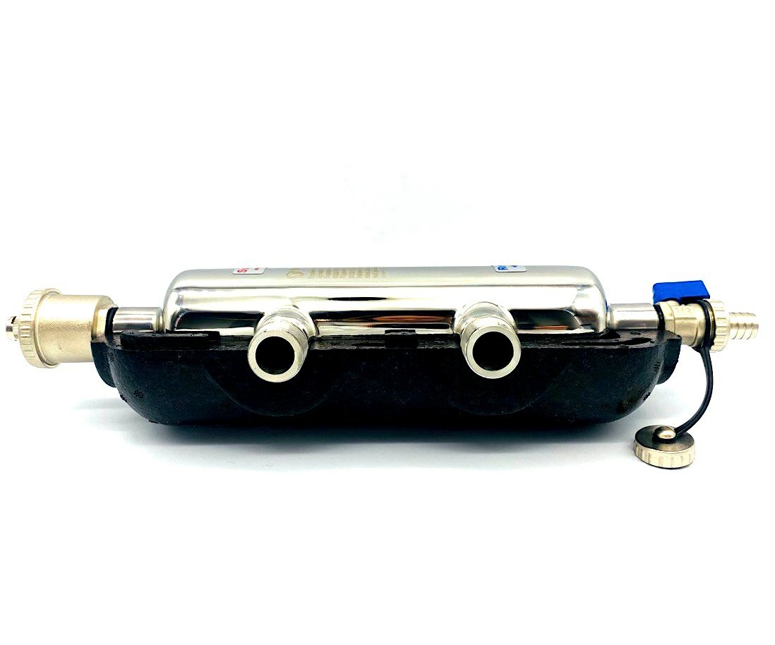 - Укомплектован автоматическим воздухоотводчиком, сливным краном и крепежом. - Макс. рабочее давление: 10 бар - Макс. температура рабочей среды: 110°С - Расчётная мощность: 45 кВт - Материал: нержавеющая сталь - Подключение котла DN20 (3/4"НР) - Подключение системы DN20 (3/4"НР) - Котловые патрубки: 3/4" - Расположение: вертикально - Температура окружающей среды: 0.50 °С - Блочная негорючая термоизоляция - В качестве рабочей среды может использоваться вода, а также растворы пропиленгликоля и этиленгликоля при концентрации до 50%.