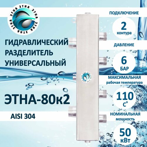 Гидравлический разделитель ЭТНА 80к2 (Aisi 304) - это устройство, предназначенное для использования в отопительных системах с несколькими контурами отопления. Он обеспечивает баланс давления и расхода между контурами, поддерживая необходимый расход теплоносителя.