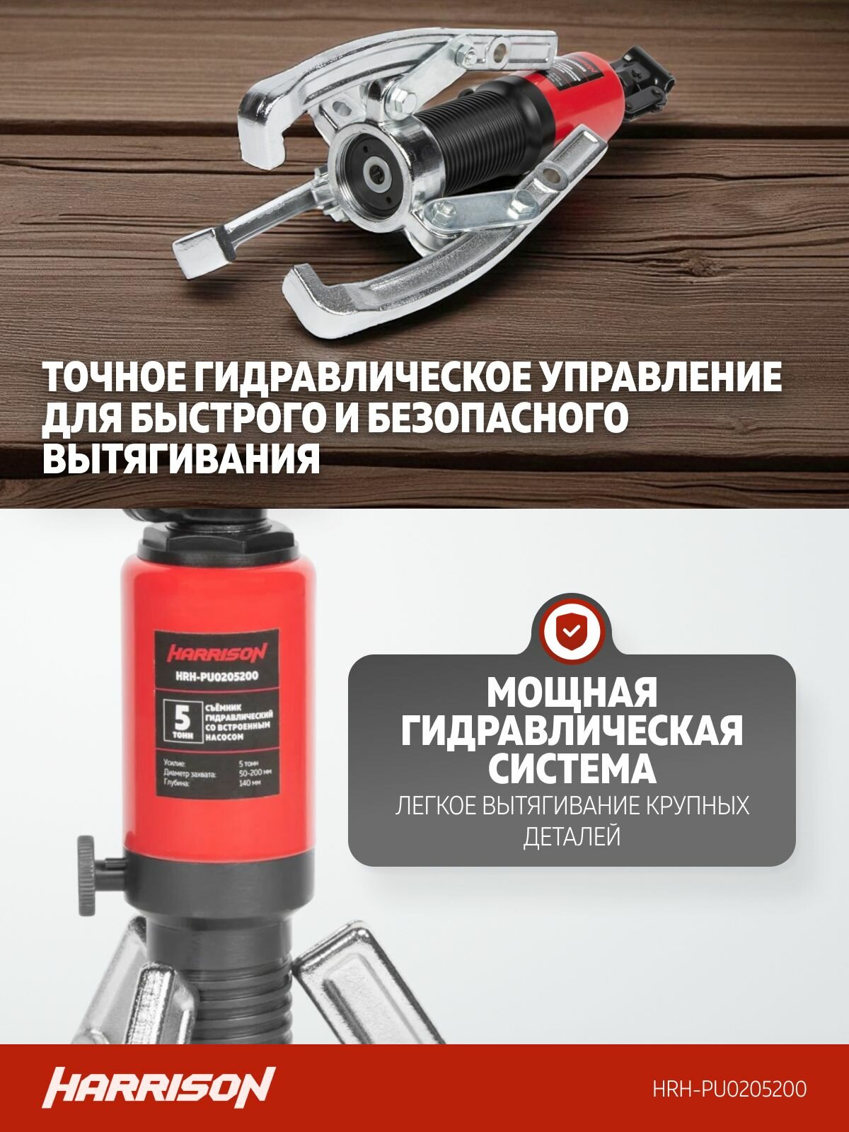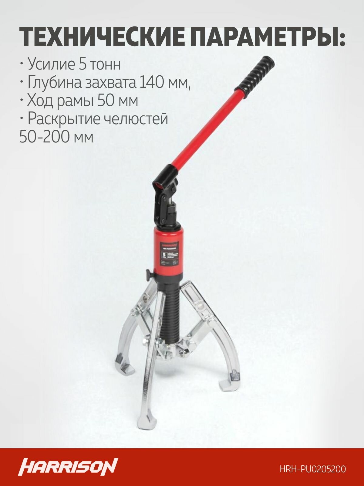 Гидравлический съёмник со встроенным насосом 5 тонн HARRISON HRH-PU0205200: сравнение цен, характеристики, фото, актуальное наличие и цены.