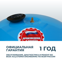 Гидроаккумуляторы предназначены для: снижения вероятности появления гидроударов в системе водоснабжения; аккумулирования воды под давлением; предохранения насоса от частого включения, что способствует увеличению ресурса насоса; обеспечения запаса воды при отключении электроэнергии. В процессе производства мы применяем современные инженерные решения, такие как метод горячей штамповки стали, сварка по технологии PrecisionGlide и порошковая окраска, благодаря чему продукция ETERNA Engineering отвечает самым высоким стандартам качества. Широкий модельный ряд: 5, 8, 12 и 35 литров для подвесной установки и 50, 80, 100 литров - напольного типа. Расширительные баки и экспанзоматы, представленные в каталоге, производятся в России на заводах ETERNA Engineering