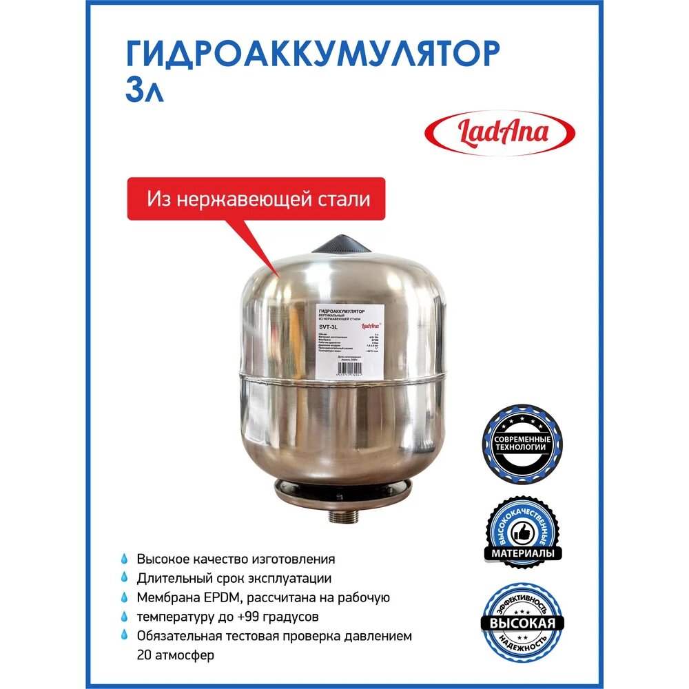 Гидроаккумулятор LadAna 3л вертикальный из нержавеющей стали 110108010: сравнение цен, характеристики, фото, актуальное наличие и цены.