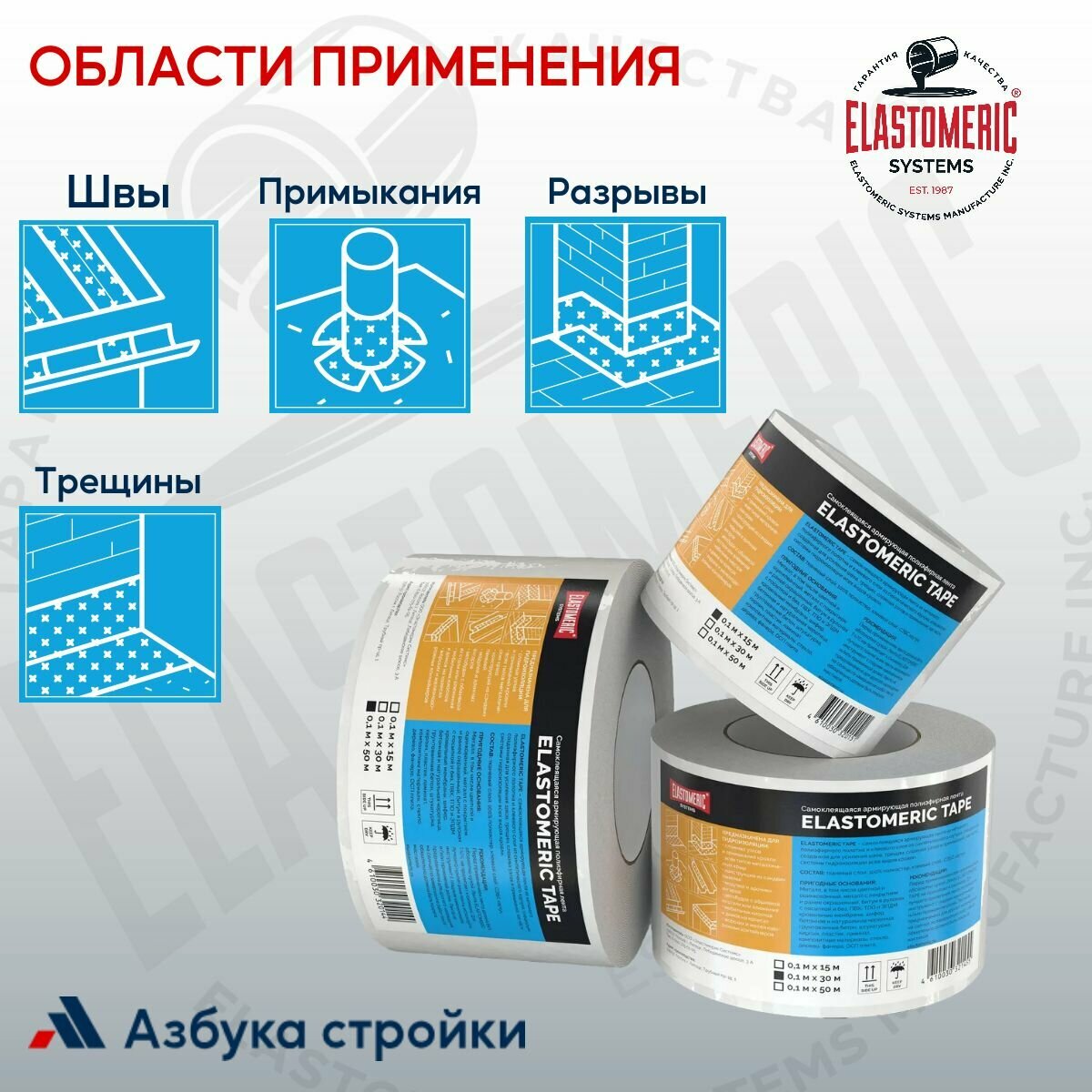 Гидроизоляционная лента самоклеящаяся 50м Elastomeric TAPE, Ткань для армирования и гидроизоляции полиэфирная — пленка армированная для зданий, сооружений и авто: сравнение цен, характеристики, фото, актуальное наличие и цены.