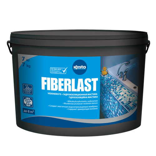 Kesto Fiberlast - гидроизоляционная мастика с содержанием армирующих волокон для гидроизоляции стен и полов во влажных и мокрых помещениях. Не применяется на объектах, постоянно подвергаемых нагрузке водой (например, бассейны) и для поверхностей, температура которых превышает +60 °С (например, стены саун).