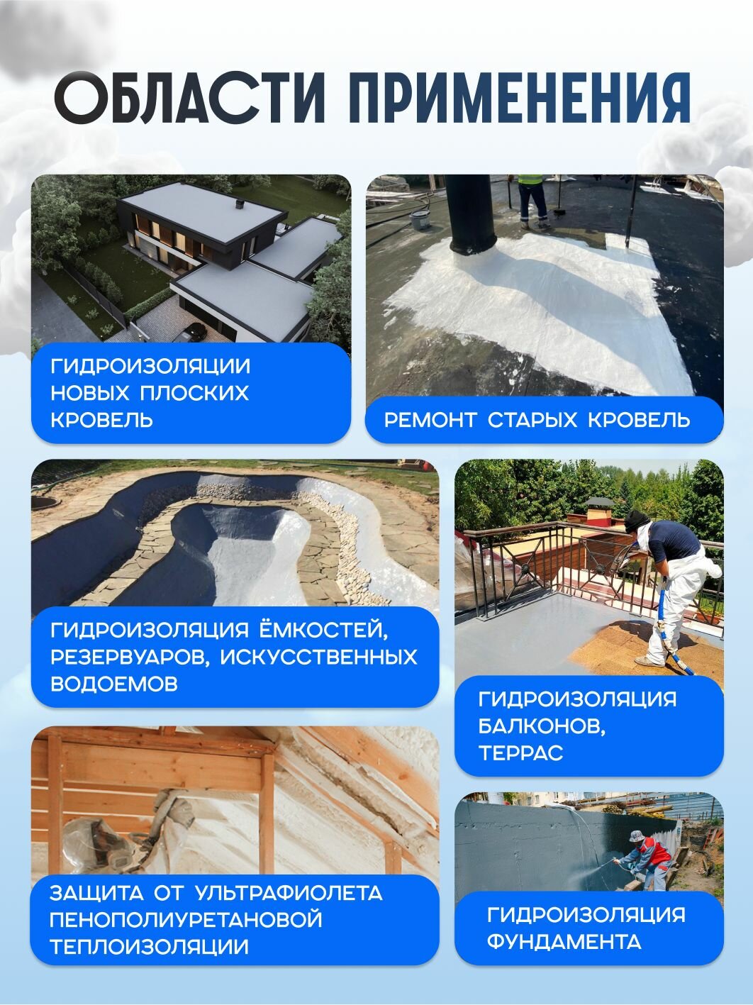 | Дополнительная информация | Подготовка поверхности: Все участки поверхности должны быть сухими и чистыми, свободными от грязи, жира, масла, рыхлой ржавчины, опалубочной смазки, поверхностных химических веществ и других загрязнений, которые могут ослабить адгезию покрытия. Поверхность не должна иметь острых выступов и ребер. Новый бетон должен быть выдержан минимум 28 дней перед нанесением покрытия. Слабо держащиеся частицы бетона, цементное молочко должны быть удалены, дефекты поверхности должны быть отремонтированы. Весь слабо держащийся гравий, пыль и другие свободные частицы должны быть удалены с битумных кровель. Подвижные трещины, щели и/или пустоты должны быть отремонтированы и армированы ELASTOMERIC Fabric закапсулированной в ELASTOMERIC – 110. Полосу армирующей ткани ELASTOMERIC Fabric шириной 15 и 30 см и соответствующей обрабатываемому участку длины, утапливается в слой сырого, нанесенного на поверхность ELASTOMERIC - 110 с помощью кист и или валика пока ткань не пропитается. Сверху, «мокрый по мокрому», наносится достаточное количество покрытия, чтобы полностью закапсулировать армирующую ткань, избегая образования непрокрасов, морщин и воздушных карманов. Подготовка поверхности влияет на качество нанесение покрытия и его долговечность. Нанесение: Перед использованием тщательно перемешайте материал низкоскоростным миксером не менее 2 - 3 минут. Наносите ELASTOMERIC - 110 на обработанную грунтом поверхность валиком, кистью или аппаратом безвоздушного распыления (давление 180 - 220 бар, сопло от 31 до 52) сплошным слоем без пропусков. В случае нанесения материала безвоздушным распылителем, можно разбавить ксилолом. Температура нанесения в пределах от –20°C до +35°C. Углы примыкания парапетов, дымоходы, водоприемные воронки, трубопроводы и т.д., армируйте полиэфирной тканью ELASTOMERIC Fabric. По заданию заказчика и/или для увеличения гарантийного срока армировать поверхности целиком, укладывая полосы ткани ELASTOMERIC Fabric шириной 1 м внахлест не менее 5 см. Очистка инструмента: ELASTOMERIC – 110 с оборудования и инструментов можно удалить при помощи ксилола, толуола, растворителей Р12 или Р4. |