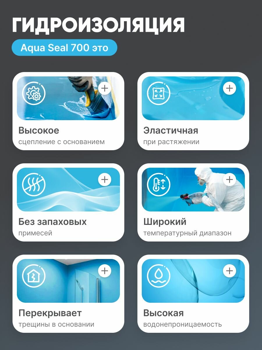 Elastomeric Aqua Seal 700 — готовая к применению однокомпонентная гидроизоляция для защиты поверхностей во влажных помещениях: ванных комнат, душевых, санузлов, кухонь и прачечных. Образует прочное, эластичное, водонепроницаемое покрытие, устойчивое к растрескиванию и перепадам температур. Идеально подходит под плитку, керамогранит, мозаичную и декоративную отделку.
