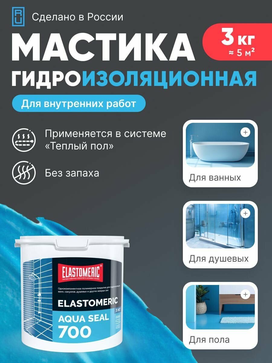 Купить Гидроизоляция для ванной под плитку Elastomeric Aqua Seal 700 3кг с доставкой по всей России.