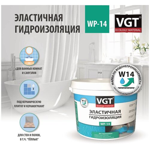 Купить Гидроизоляция VGT WP-14, эластичная, для влажных помещений, 14кг с доставкой по всей России. Гидроизоляция VGT WP-14, эластичная, для влажных помещений, 14кг: сравнение цен, характеристики, фото, актуальное наличие и цены.