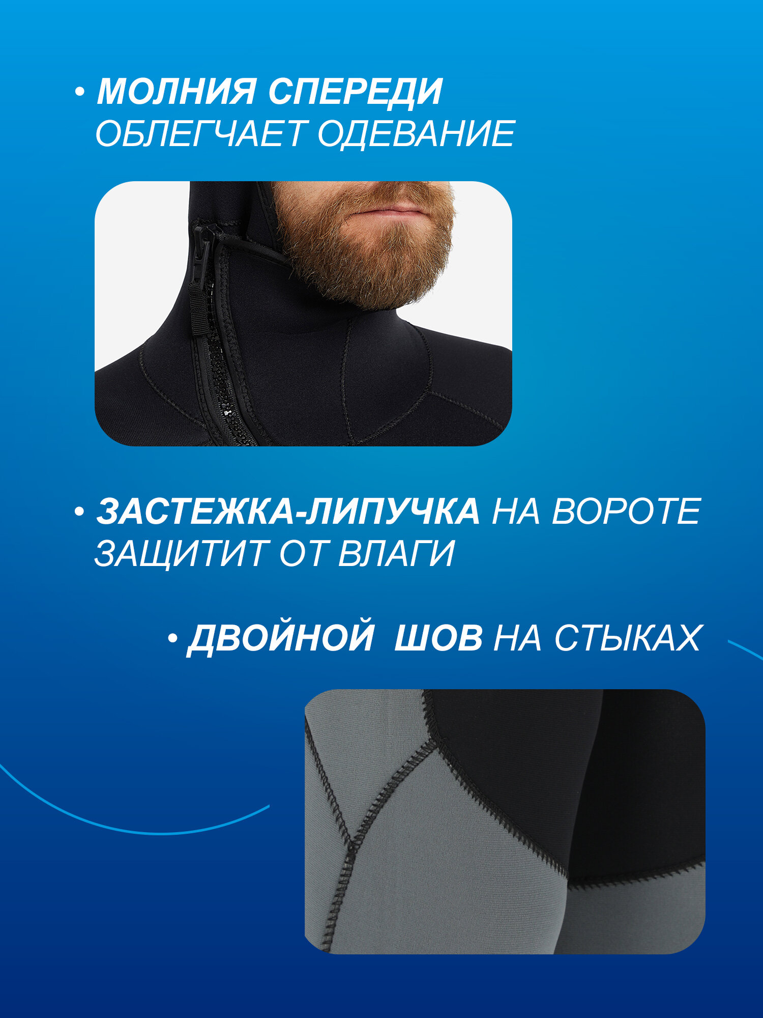 Представляем вашему вниманию "мокрый" мужской гидрокостюм Joss с капюшоном, выполненный из неопрена повышенной толщины — 5 мм! Эта модель рассчитана на тех, кто уже имеет опыт занятий водными видами спорта и предпочитает более продвинутые условия. Благодаря молнии, расположенной спереди, вы сможете легко и быстро надевать и снимать гидрокостюм. Покрытие из лайкры в области шеи дополнительно защищает от ветра и брызг.