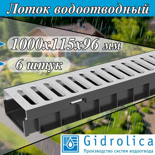 6 штук лоток водоотводный 1000х115х96 мм Gidrolica Light с оцинкованной щелевой решеткой DN100 (А15), артикул 080066, черный: сравнение цен, характеристики, фото, актуальное наличие и цены.