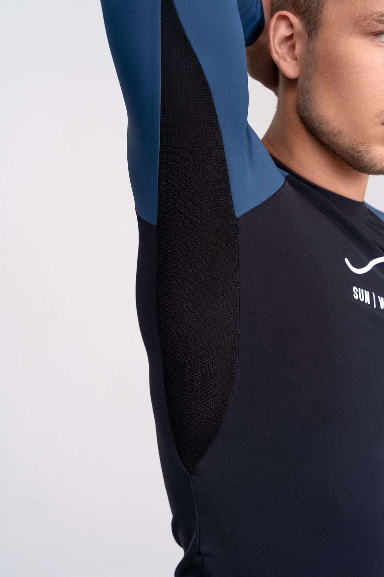 Лайкра мужская для серфинга из премиального итальянского бифлекса. Плотно сидит по фигуре. Размер S. В подмышечной зоне вставки из перфорированной ткани, что позволяет коже дышать. SUN | WAVES | SOUL BESRF