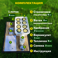 - Лоток с полноценным комплектом горшочков и субстрата на 8 кустов
