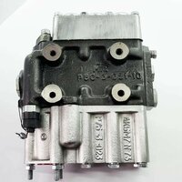 - В позиции "Подъем" золотника, плунжер, через управляющий канал и отверстие в золотнике, связан с переливным клапаном и открывается благодаря перепаду давления на дроссельном отверстии переливного клапана в момент срабатывания предохранительного клапана, через открывшееся отверстие масло проходит к бустеру и через него отжимает подпружиненную втулку, освобождая шарики, которые выходят из канавок и золотник под действием пружины возвращается в нейтральное положение. Поэтому в позиции "Подъем" давление автовозврата практически равно давлению регулировки предохранительного клапана.