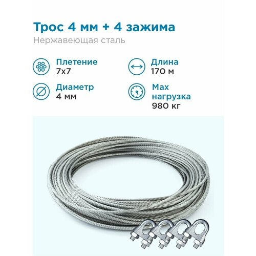Купить Гидротек Трос нержавеющая сталь 7×7 AISI 304, 4мм бухта 170 метров + зажим 3-4 мм 4шт. с доставкой по всей России. Гидротек Трос нержавеющая сталь 7×7 AISI 304, 4мм бухта 170 метров + зажим 3-4 мм 4шт.: сравнение цен, характеристики, фото, актуальное наличие и цены.